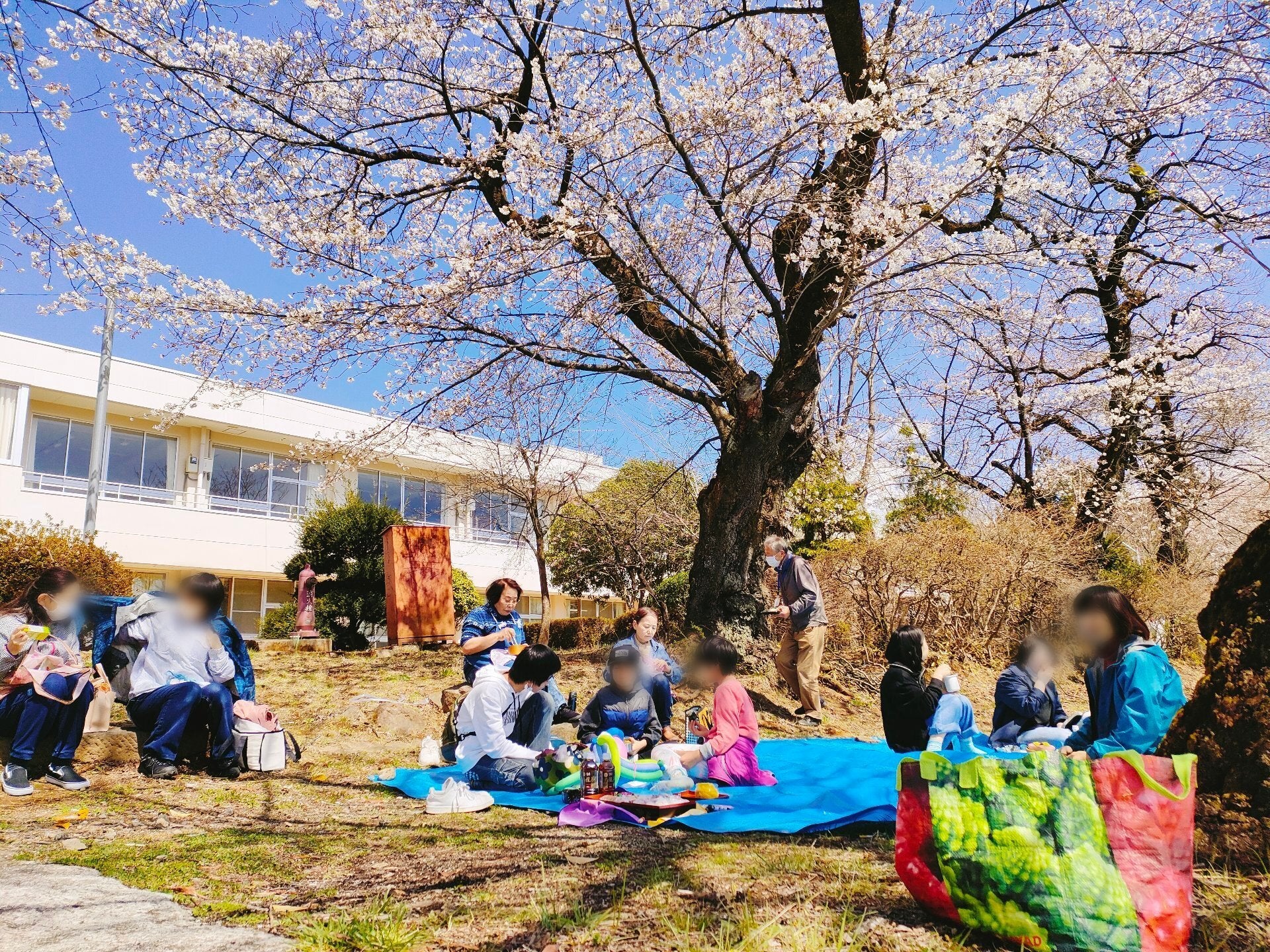 お昼には満開の桜をお花見しながら、みんなでご飯を食べました。スタッフのシンゴさんがお餅を差し入れしてくれて、ますますお花見は盛り上がりました!