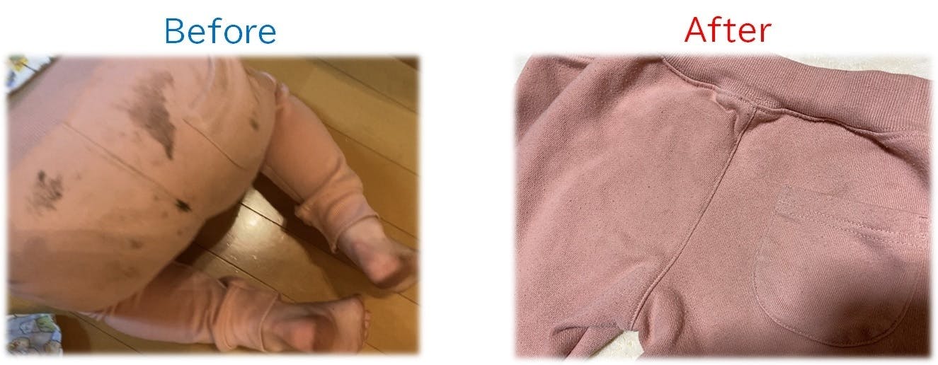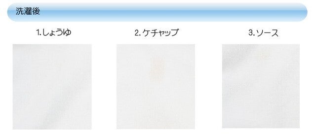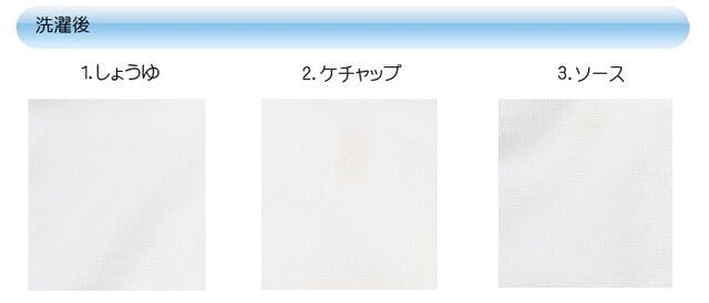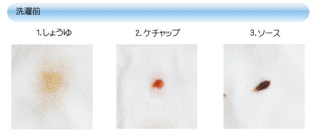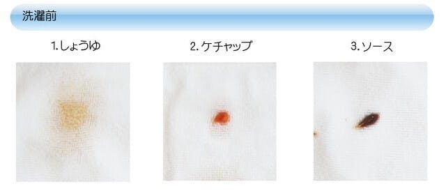 お客様からもよくこのようなご質問をいただくことがございます。ふわっしゅは洗浄力試験を受けているので、普段服につくと落ちるか心配になるようなしょうゆやケチャップなどもしっかり落ちるという実験結果が出ております。