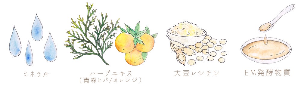 成 分:ミネラル水、ハーブエキス(青森ヒバ・オレンジエキス)、大豆レシチン、発酵物質