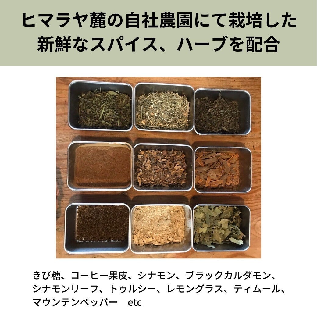 原材料名:オレンジジャム(ネパール製造)、きび糖、はちみつ、ジンジャージャム、コーヒ―の果皮、シナモン、ブラックカルダモン、シナモンリーフ、レモングラス、ティムール、マウンテンペッパー