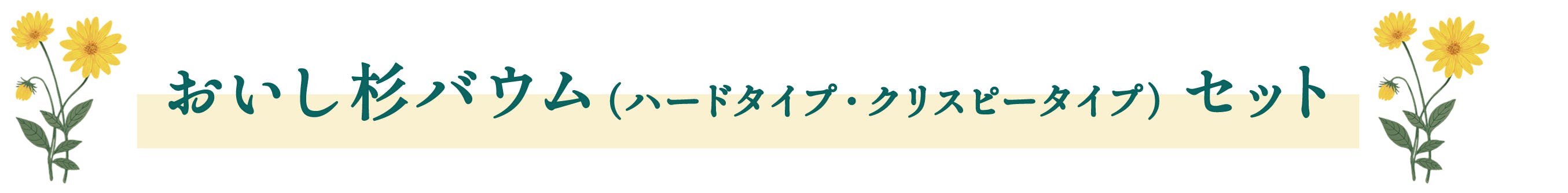 今回、小国杉を表現するため、ハードタイプとクリスピータイプの2種類のバウムクーヘンを用意しています。特に、クリスピータイプのバウムクーヘンは、外はカリッと中はもっちりとした2種類の食感が楽しめるとともに、見た目も小国杉に近い、珍しいバウムクーヘンとなっています。