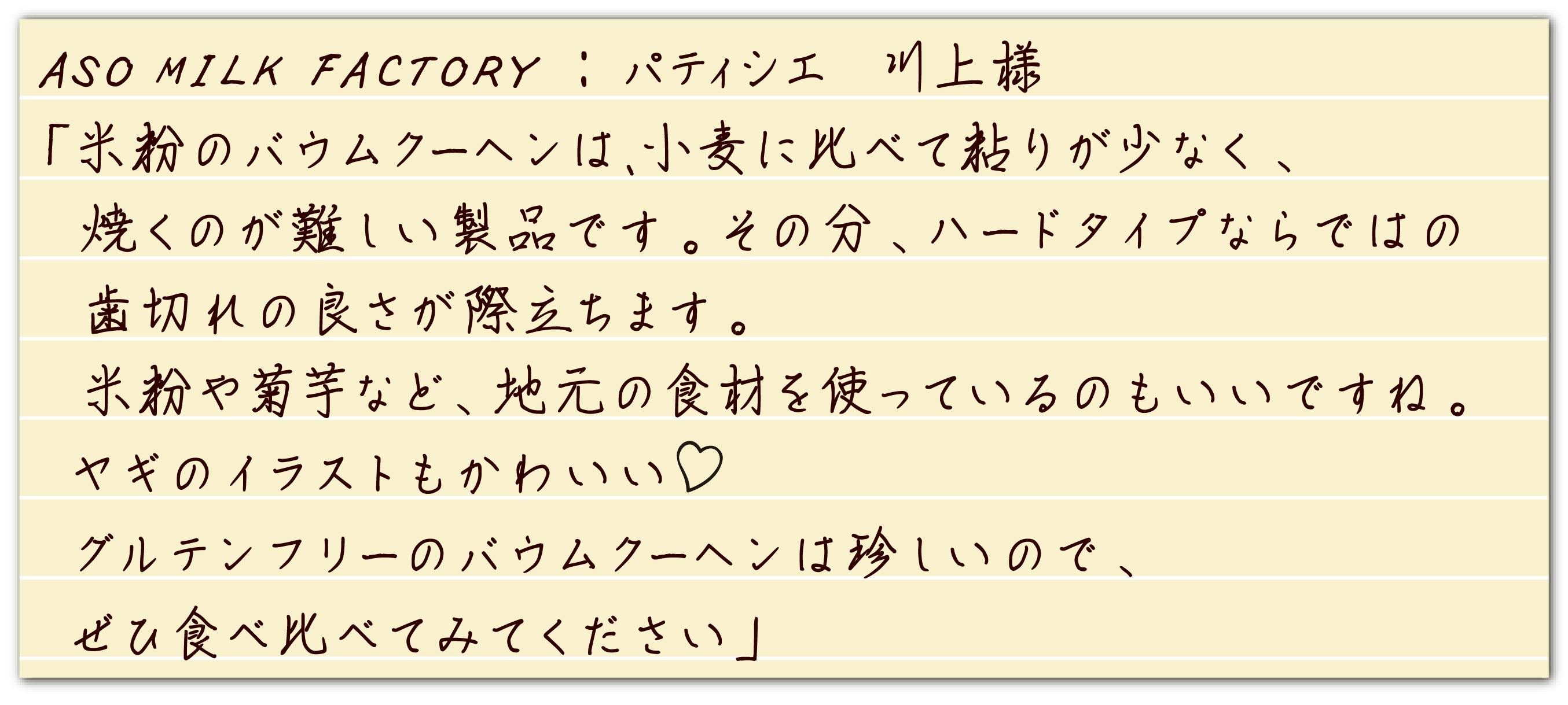 南小国町を代表するお土産にするため、今回のバウムクーヘンの主原料である米粉と卵※は南小国産のものを使用しました。