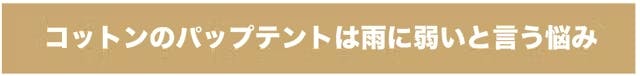 □ ポリエステル素材のテントに比べてコットン素材のテントは雨に弱いとう弱点を抱えています。テントのハトメ部分から雨が侵入することも・・・