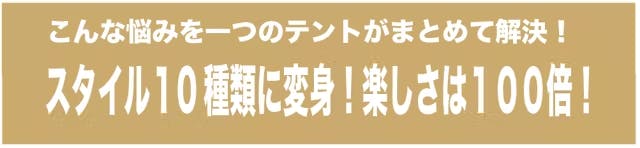 □ テントの他にも日除けや雨除け用の大きなタープを別に設営しなくてはいけないが場合があり、さらに設営に時間と労力がかかってしまう。そして道具も増え続けるため、また収納場所の問題が・・・・