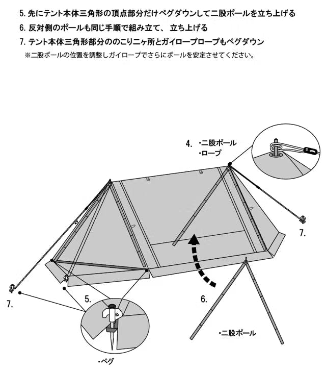 付属品:ペグ18本 ガイロープ6本 二股ポール2本 キャノピー用ポール2本 雨用ポール1本