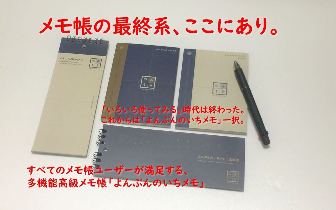 〇たとえメモ帳にもちゃんとした性能とちゃんとした機能を求めるひとクラス上のあなた。あなたのために「よんぶんのいちメモシリーズ」はあります。