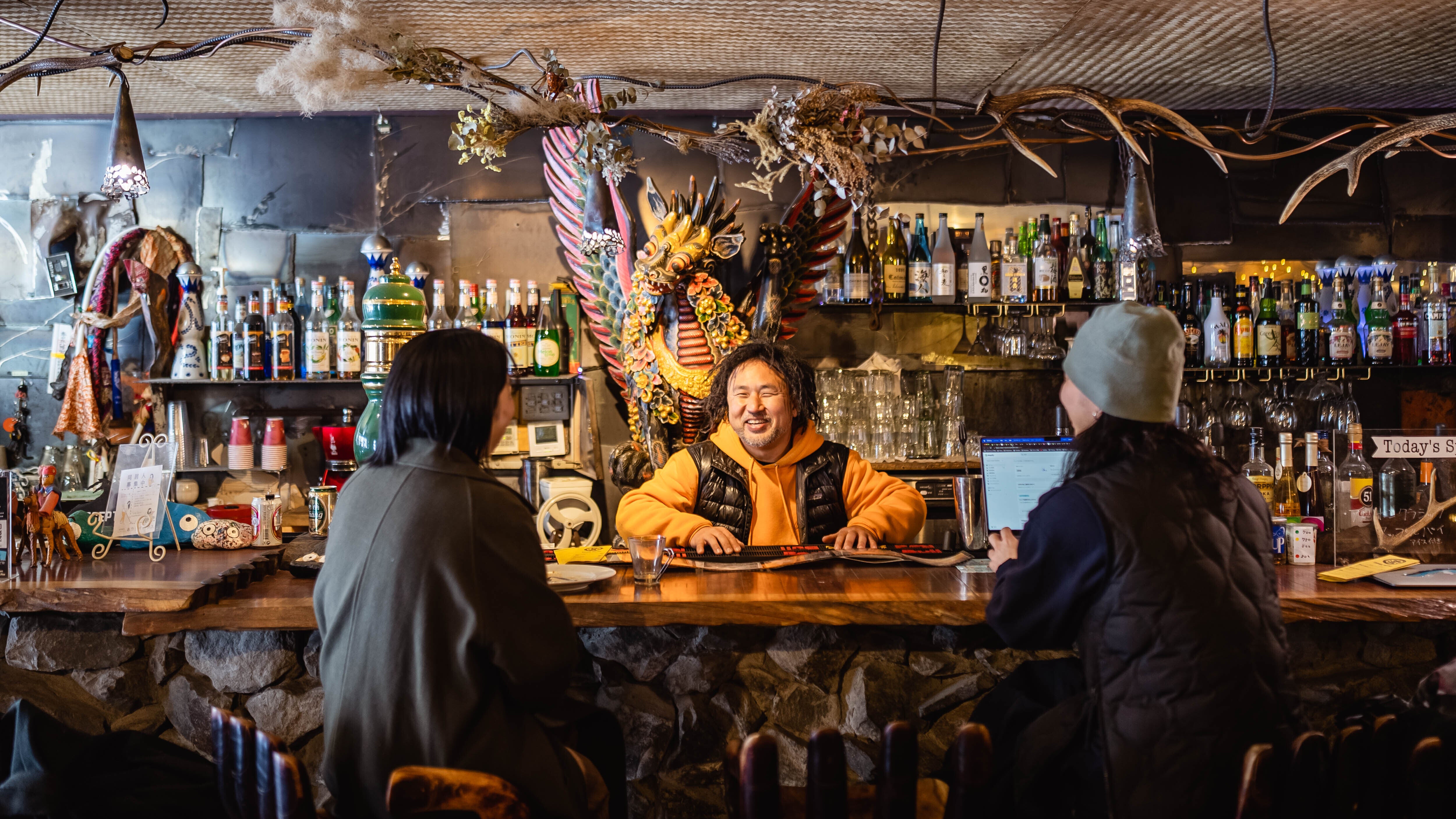 日本にいるときは、Piseでバーテンをしたり、コックをしたり、
