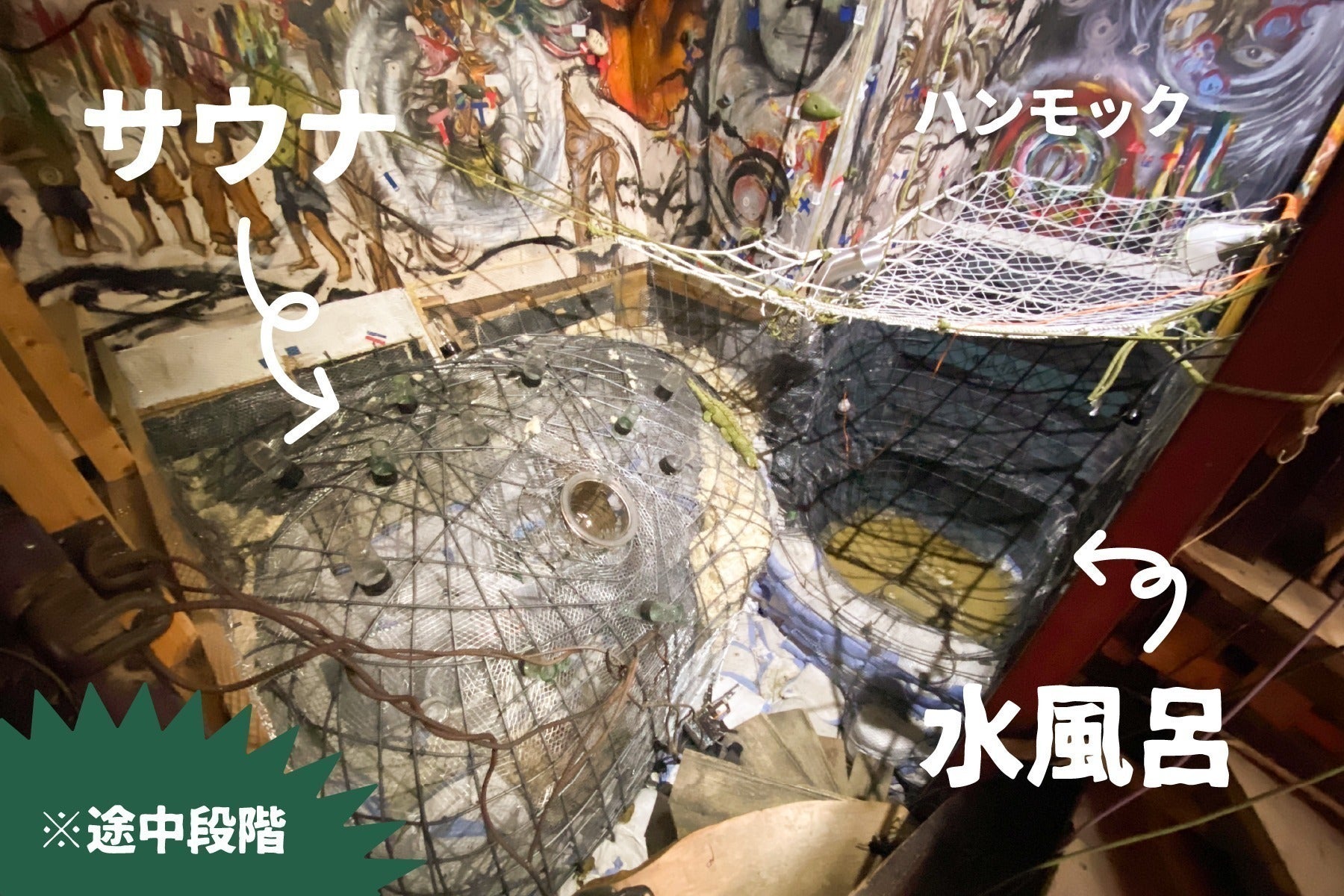 クライミングウォールを解体し、サウナ室のスペースを確保、