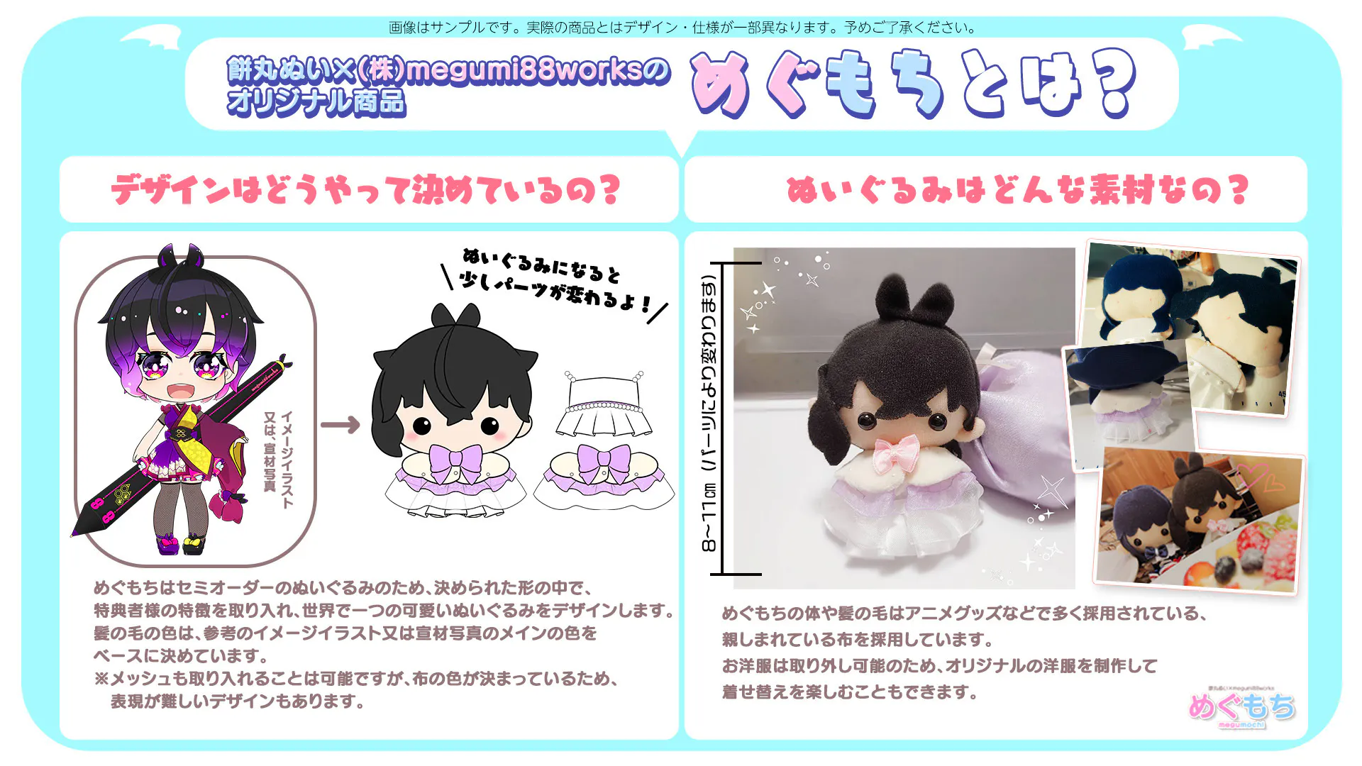 こちらのグッズは「おっきいのがいいよね!!」というめぐめぐの考えの元作成され、完成品を生配信へ出した際に何度も何度も「これはっwwwwww」と失敗ではないことをごまかしていた幻のサンプル品です(早口説明)