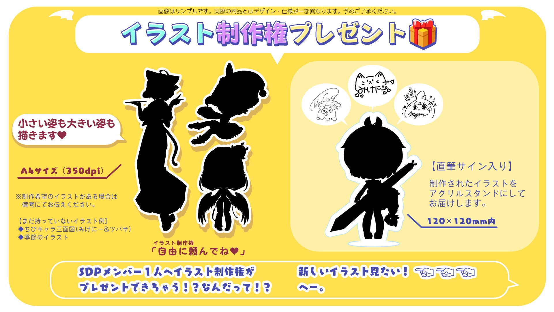 ◆SDPメンバー1名を選択してイラスト制作権をプレゼントできます。