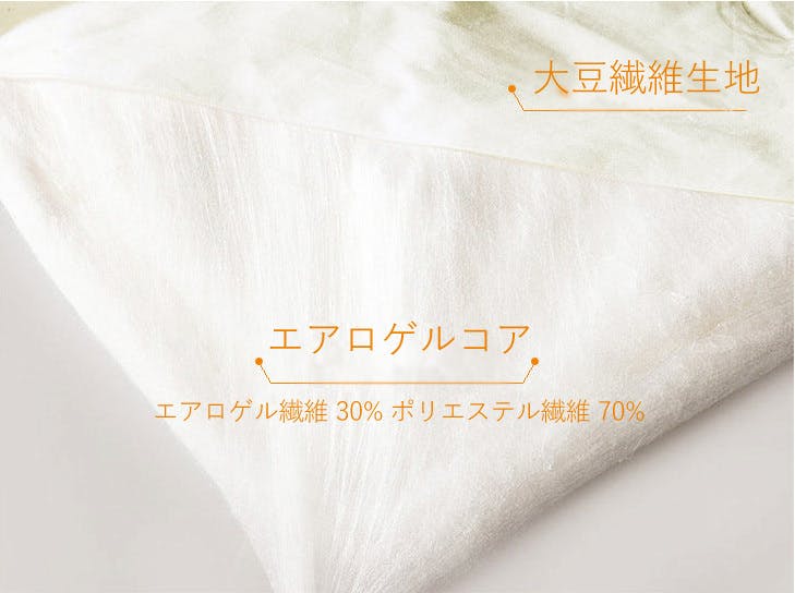 素材: 布地 大豆繊維生地 100% 中綿 ポリエステル繊維 70% エアロゲル 30%