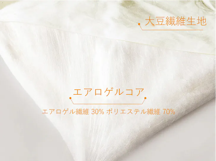 素材: 布地 大豆繊維生地 100% 中綿 ポリエステル繊維 70% エアロゲル 30%