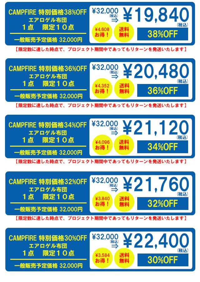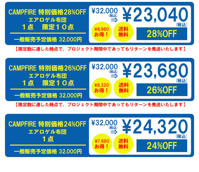 【限定リターンは限定数に達した時点で、プロジェクト期間中であってもリターンの配送をいたします】