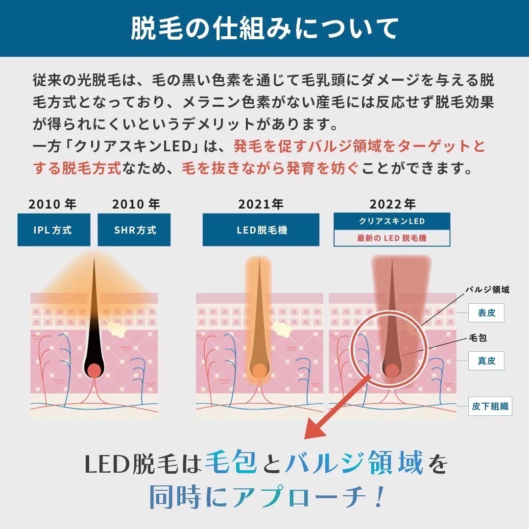 ・従来の脱毛器では効果が薄かった深い毛や薄い毛にも効果的