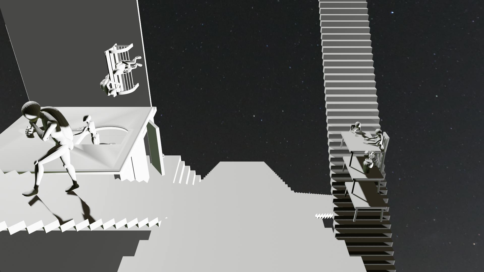 私は今、3Dの世界で未知なるトリックアートらしきものを作っています。