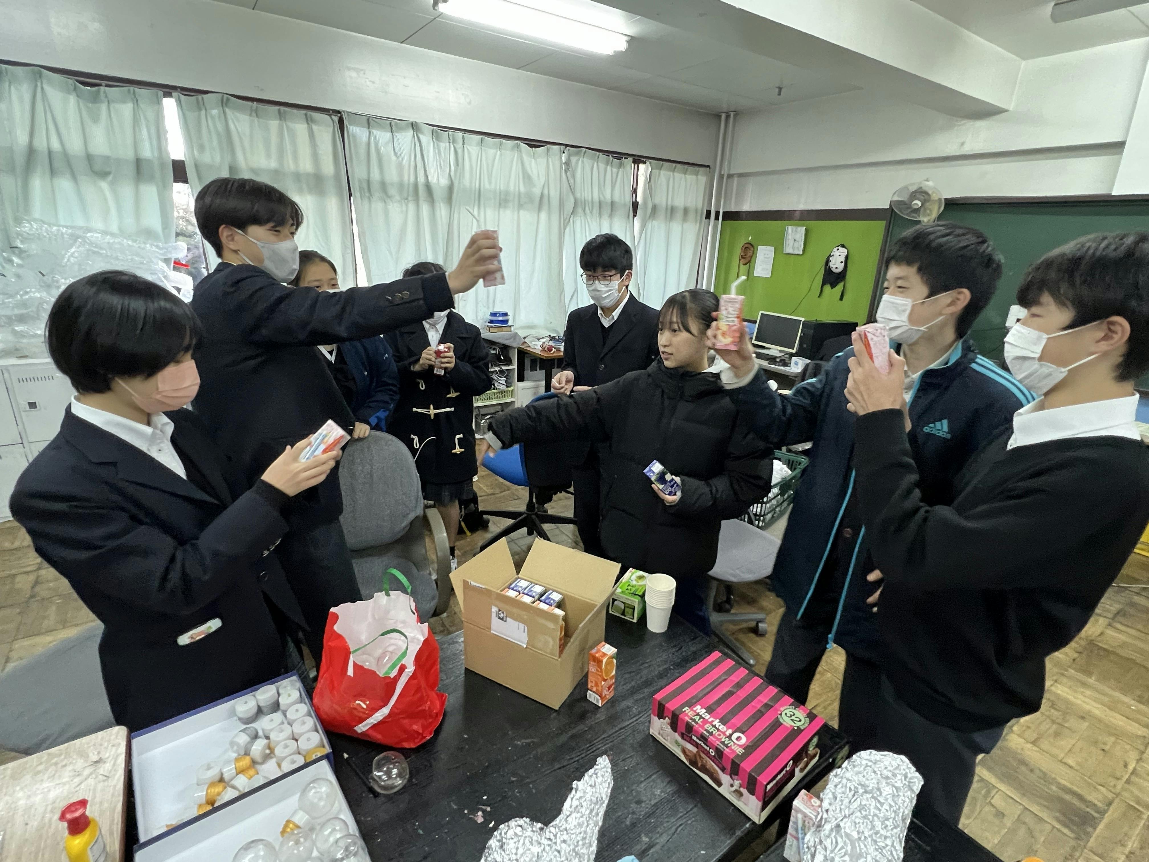 保護者からもらった差し入れで乾杯!