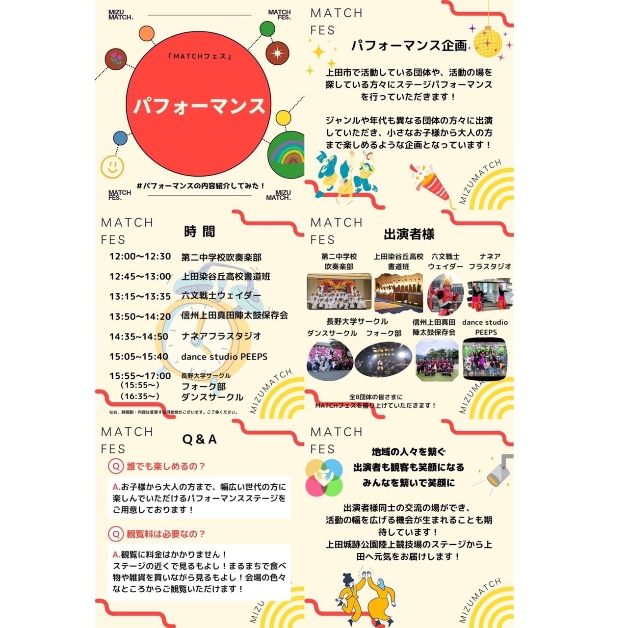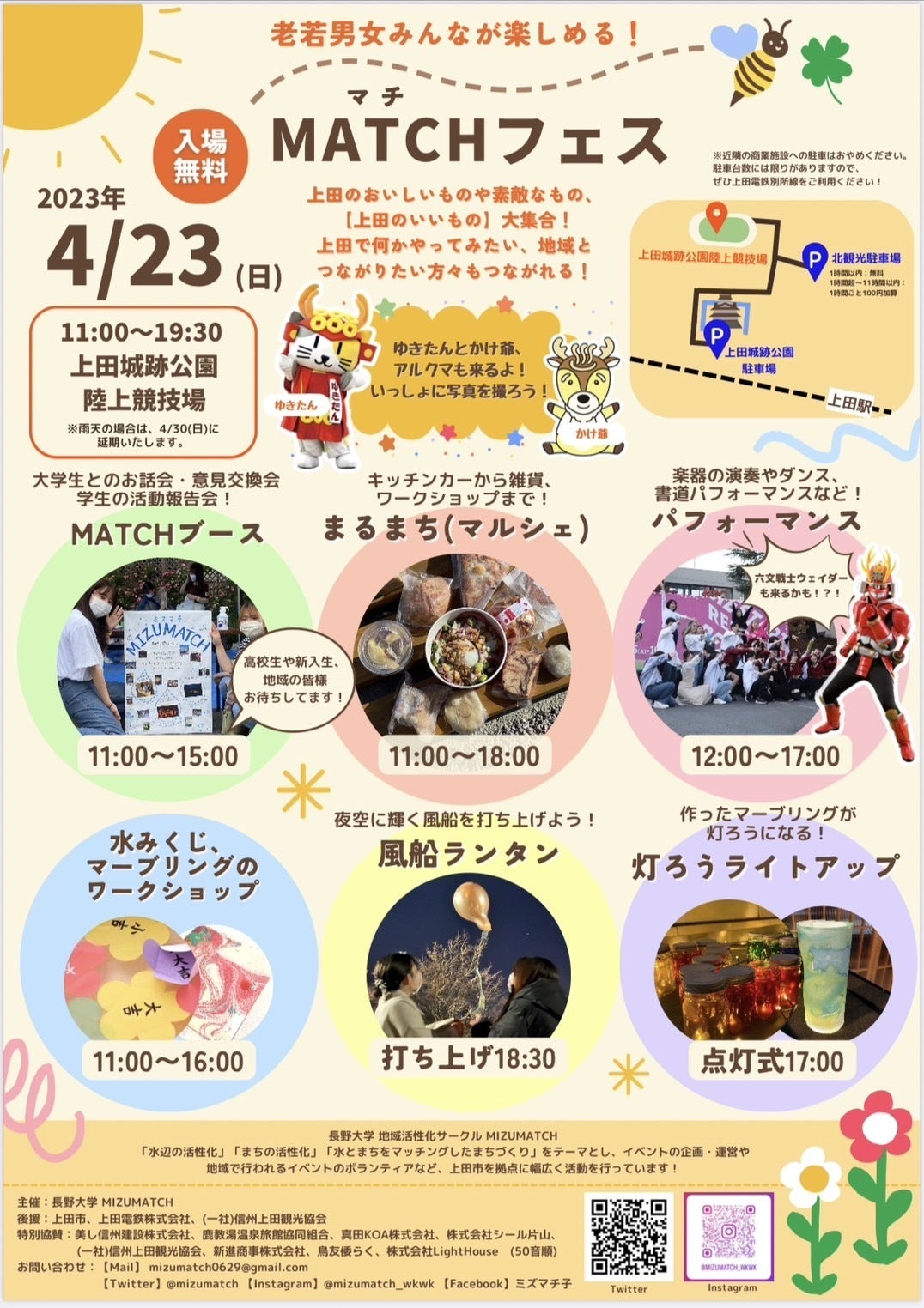 こんにちは!MIZUMATCHです!いよいよ 明日、MATCHフェスが開催されます!!【上田のいいもの】をたくさん集めたイベントです!ぜひお越しください!![会場]上田城跡公園陸上競技場[時間]11:00〜19:30そして、MIZUMATCHのホームページが公開されました!MIZUMATCHについてはもちろん、MATCHフェスについての詳細が載っています。下記のURLからホームページに移動することができます。ぜひチェックしてください!MIZUMATCHホームページURL↓https://mizumatch0629.wixsite.com/wkwk