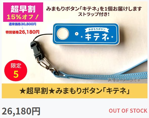 【★超早割★みまもりボタン「キテネ」】限定5個が、先ほど完売になりました!