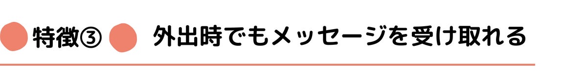 従来の家庭用ナースコールは、配線工事が必要な据え置き型のものや、無線通信ネットワークを利用しているものが一般的だったので、家から出ると、コールを受け取れませんでした。その点、「キテネ」は、LTE(携帯電話のネットワークの一種)を介してコールがLINEに届くので、Wi-Fi環境がなくても、外出中でも、携帯電話がつながるエリアであれば、全国どこでもメッセージの送受信ができます。