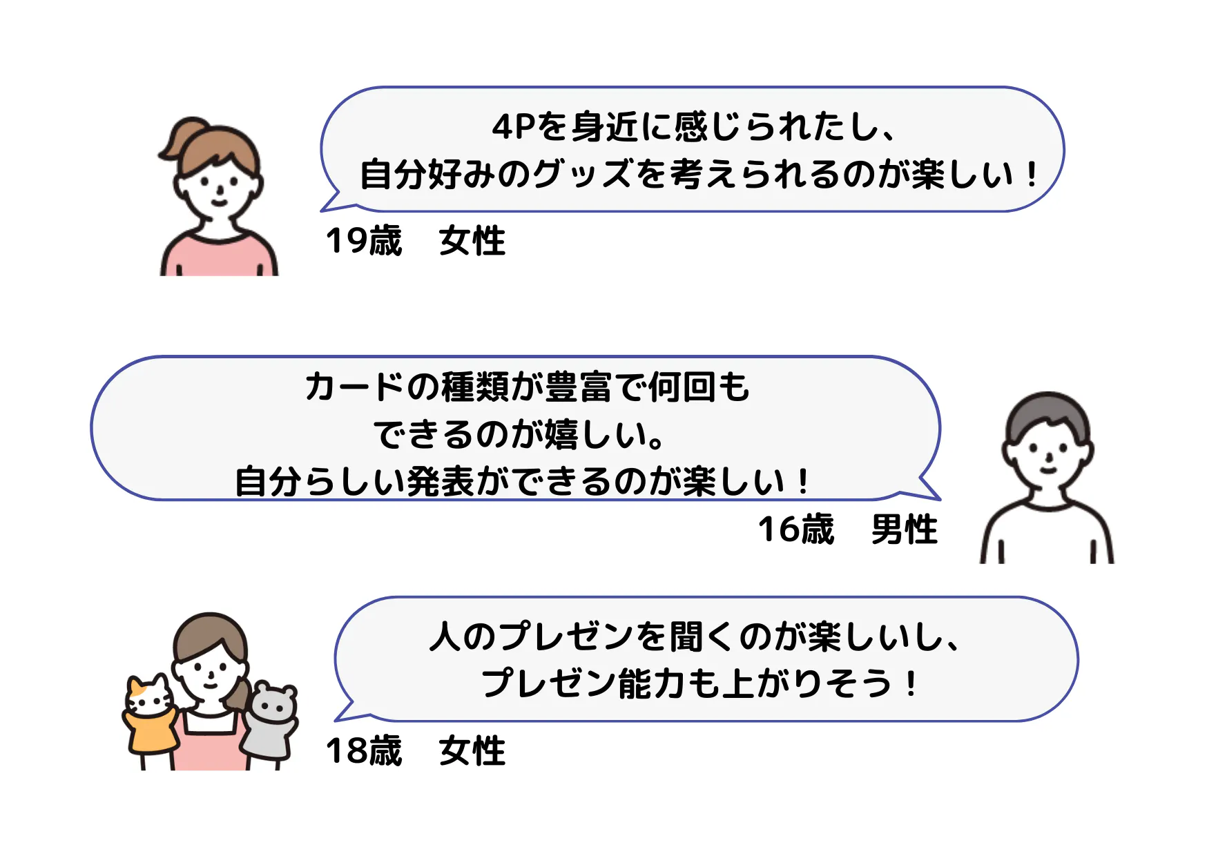 文章で説明されると複雑な4Pが、想像しやすい推しグッズでとてもわかりやすく学べます。また、自由度が高く答えがないゲームなので、マーケティングを学んだ人ほど、ユニークで今までに無い新しいアイデアが生まれます!