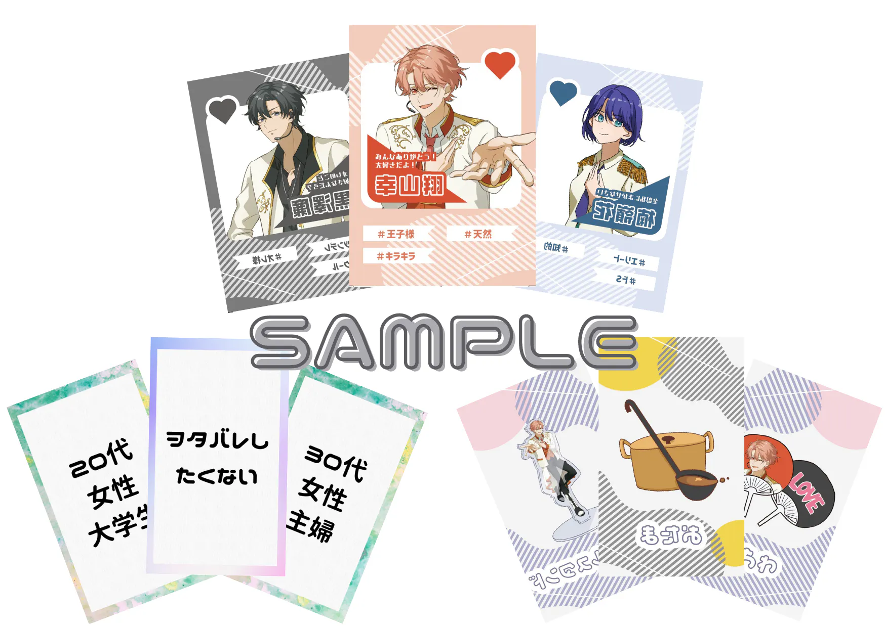 カードゲーム本体、アクリルスタンド12体セット、キラキラバージョン12枚セット、社員証風カード12枚セット、アクリルハンガー、手書きレター 15,000円