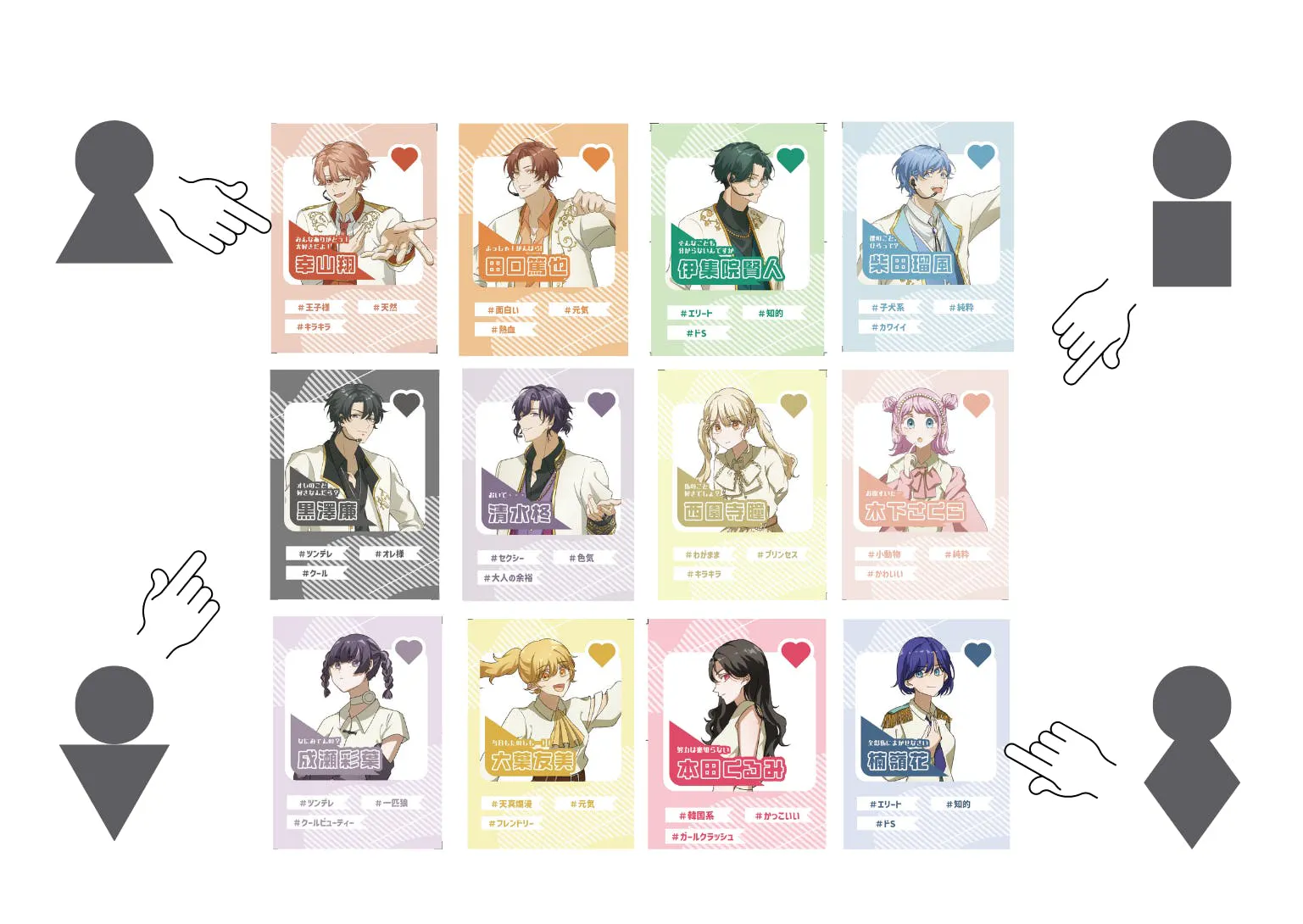 アイドル達は、個性あふれる美男美女12人!! きっとあなたの推しも見つかるはず♡