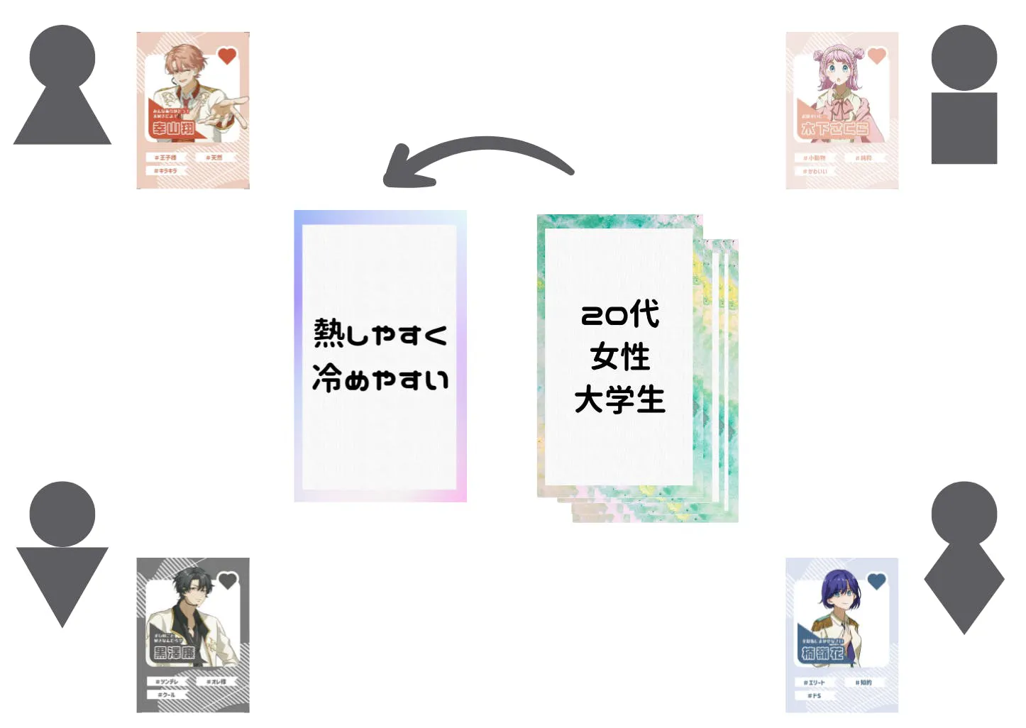 ・ターゲットカード→(表)顧客カード (裏)特徴カード 24枚