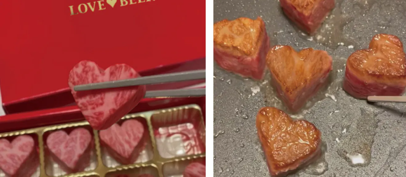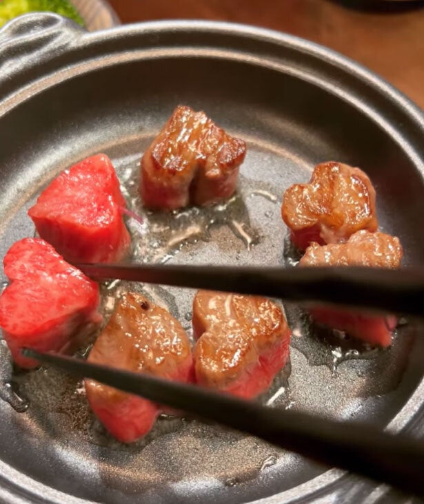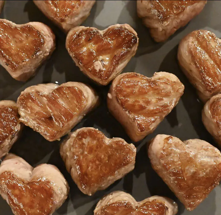 特上ロースとして扱われているこちらのハネシタが一口サイズの可愛いハート型に大変身♪