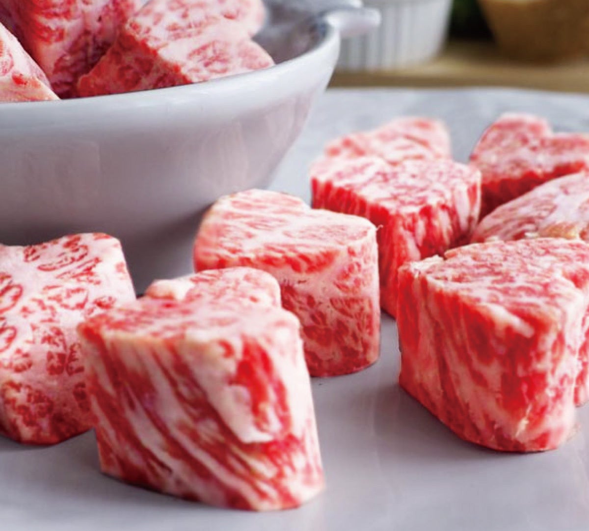 美味しいお肉をお届けするというミッションは当然のこととして取組んできましたが、愛する肉をいろいろなカットにより 「食べる楽しみ」だけでなく「見る楽しみ」を味わっていただきたい!と思いを込めました。