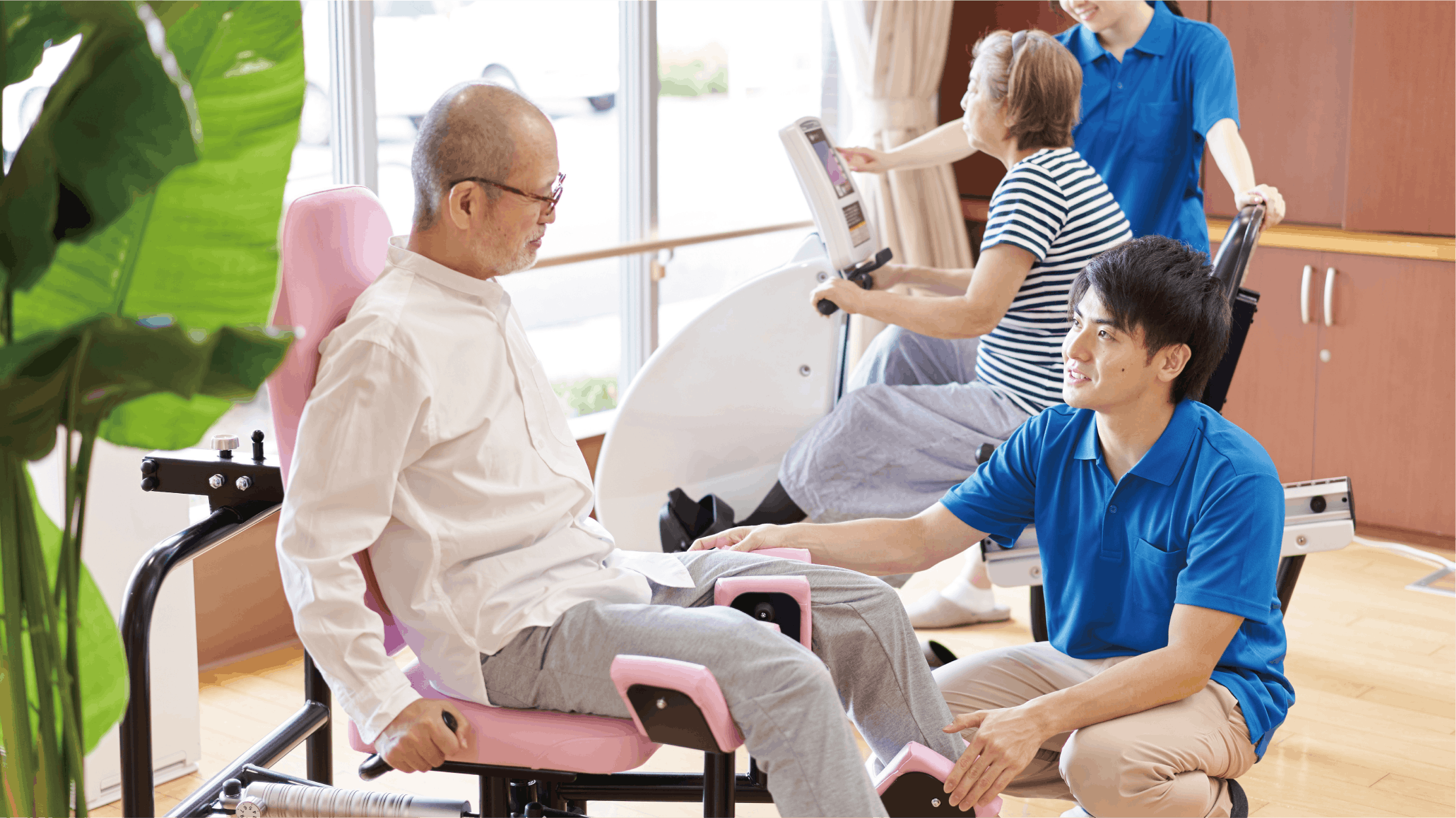 寝たきりにならないために。自分のために行こうという利用者の方が非常に多い施設です。