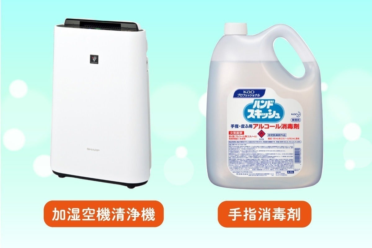 今回私たちは、クラウドファンディングで集めた資金を使用して従業員や利用者の感染予防対策として、加湿空気清浄機と手指消毒剤を購入しオフィスに追加設置することを計画しています。