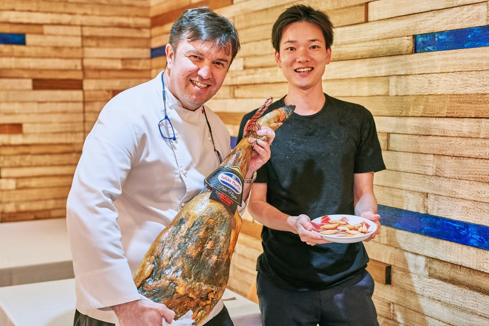 「マドリードのメイン通りには毎日多くの観光客がやってきます。そんな中で本物のスペイン食材を気軽に楽しんでもらいたいと思っています。メインは海鮮料理ですが、スペインと言えばやっぱり生ハムは外せません。基本的に食材を仕入れるときには生産者を訪れて、物だけではなく姿勢も大事なポイントと考えています。ギフエロ産イベリコ豚と言えばスペインではまず間違いない生ハムだと思います。私も多くの生産現場を見てきましたが、農場や加工場、熟成まですべて一社で行っているイベリコ豚農家はほとんどありません。日本には行ったことがないですが、スペインと日本は食文化が似ているのできっと美味しいと思ってもらえると思います」