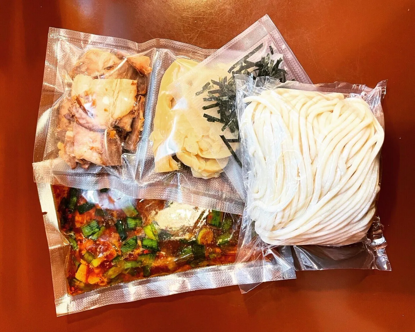 1食分内訳:麺150g、めんま1袋、チャーシュー1袋、のり1袋