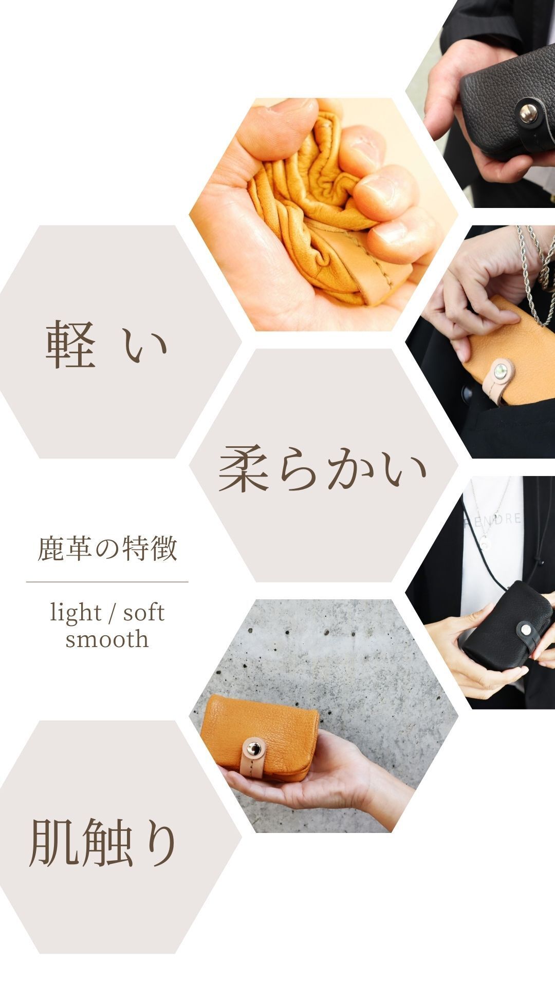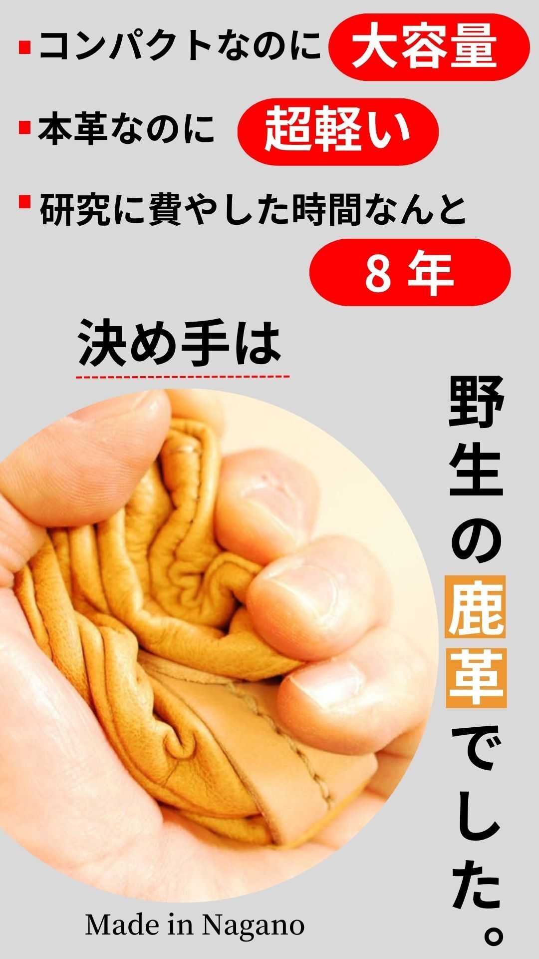メイドインジャパンの鹿革小物は、美しさと繊細さを兼ね備えています。職人の技術によって生み出される緻密な縫製や細部のディテールは、日本ならではの美意識と洗練されたデザインを反映しています。これらの特徴は、鹿革小物が持つ独自の魅力を引き立て、一層の価値を与えます。