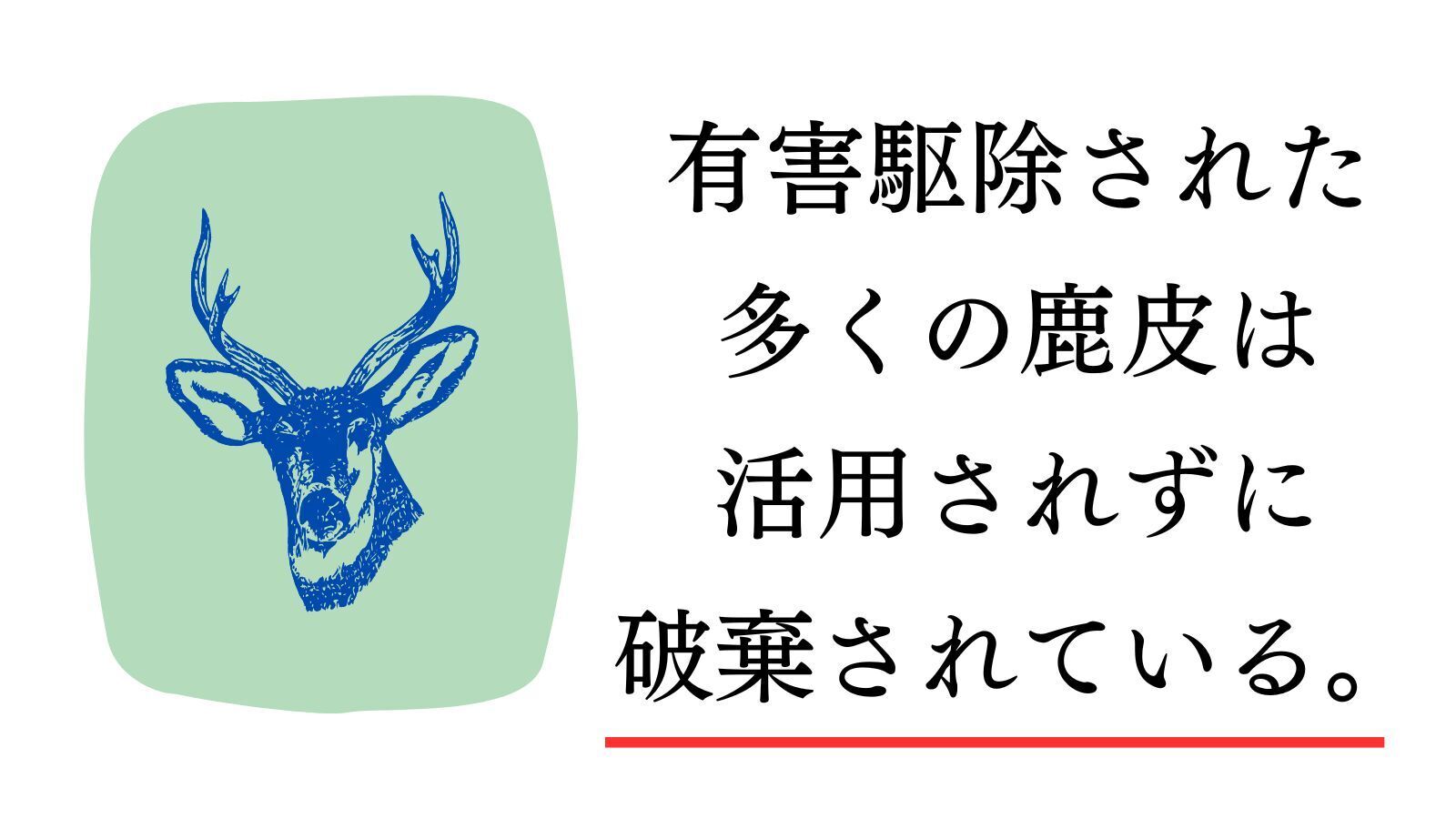 私達のプロジェクトは社会問題になっている有害駆除された天然の鹿革を使っています。肉はジビエとして活用されていますがそれで活用率は20%と言われています。革に関して言えば1%程度と言われています。