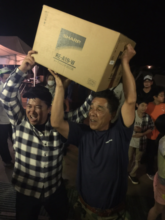 支援物資を次々と運ぶライズカンパニー代表工藤さん