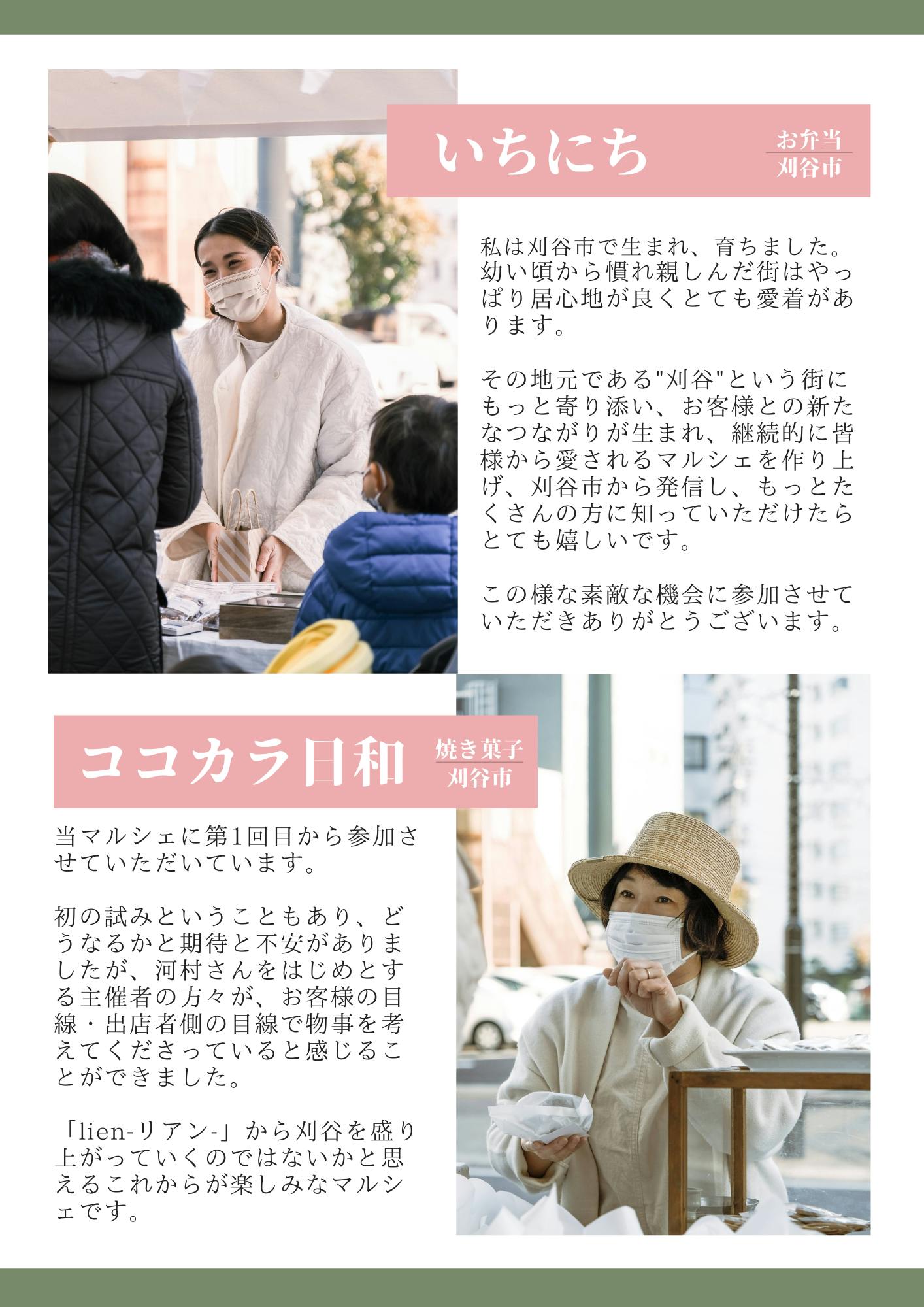 「lien-リアン-」を通して、実店舗や別イベントに出店する、lien-リアン-出店者を目掛けて来店される方も増えているとお聞きし、また、「刈谷駅北口へ初めて来ました」「後から近くに喫茶店に行きます」など、刈谷駅周辺を知ってもらうきっかけにもなっており、開催してよかったと改めて感じることが出来ました。