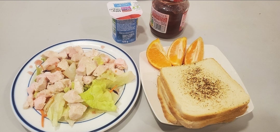 朝昼晩と写真の順で食べていき、完食で寝起きにプロテイン、夜の練習前にプロテインやバナナを摂っています。