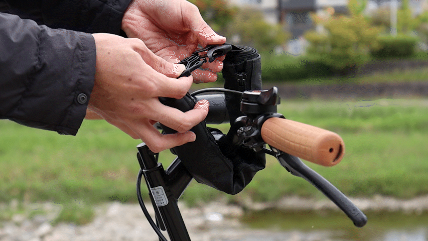 横幅40cmに収まる範囲の棒状の場所であれば付けることが可能です。ベルト通しや自転車のサドル、ご自宅のフック等の身近なところに収納できるところがポイントです。