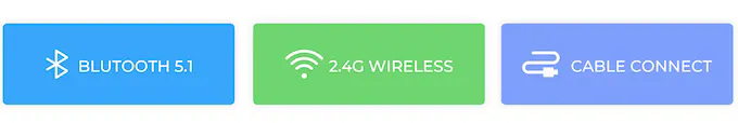 Windows, Mac, Linux, iOS, AndroidのOSに利用可能で、Type-Cの有線ケーブル接続、2.4Ghzでのワイヤレス接続、Bluetooth5.1の3つの方法で接続することができます。