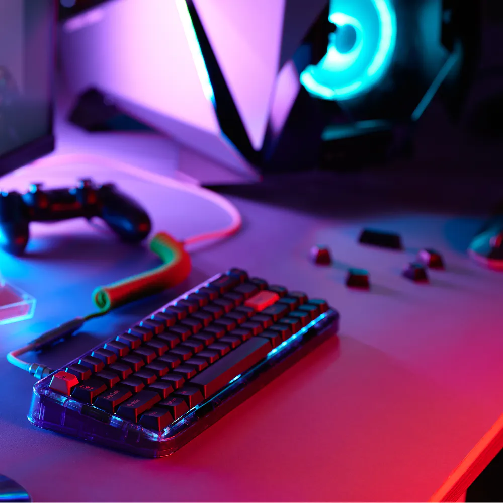 見るだけでもテンションが上がるユニークなデザインはもちろん、メカニカルキーボードとしての打鍵感やカスタマイズ性、そして実用的な機能性まですべてをバランスよく整えた高級キーボードとなります。