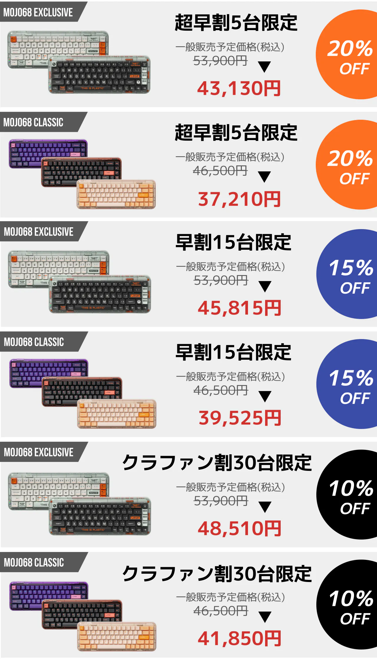 「メカニカルキーボードを一度も使ったことない人はいるけど、一度だけ使った人はいない」と我々は信じています。ぜひこの機会に「Mojo 68」をお試しください!