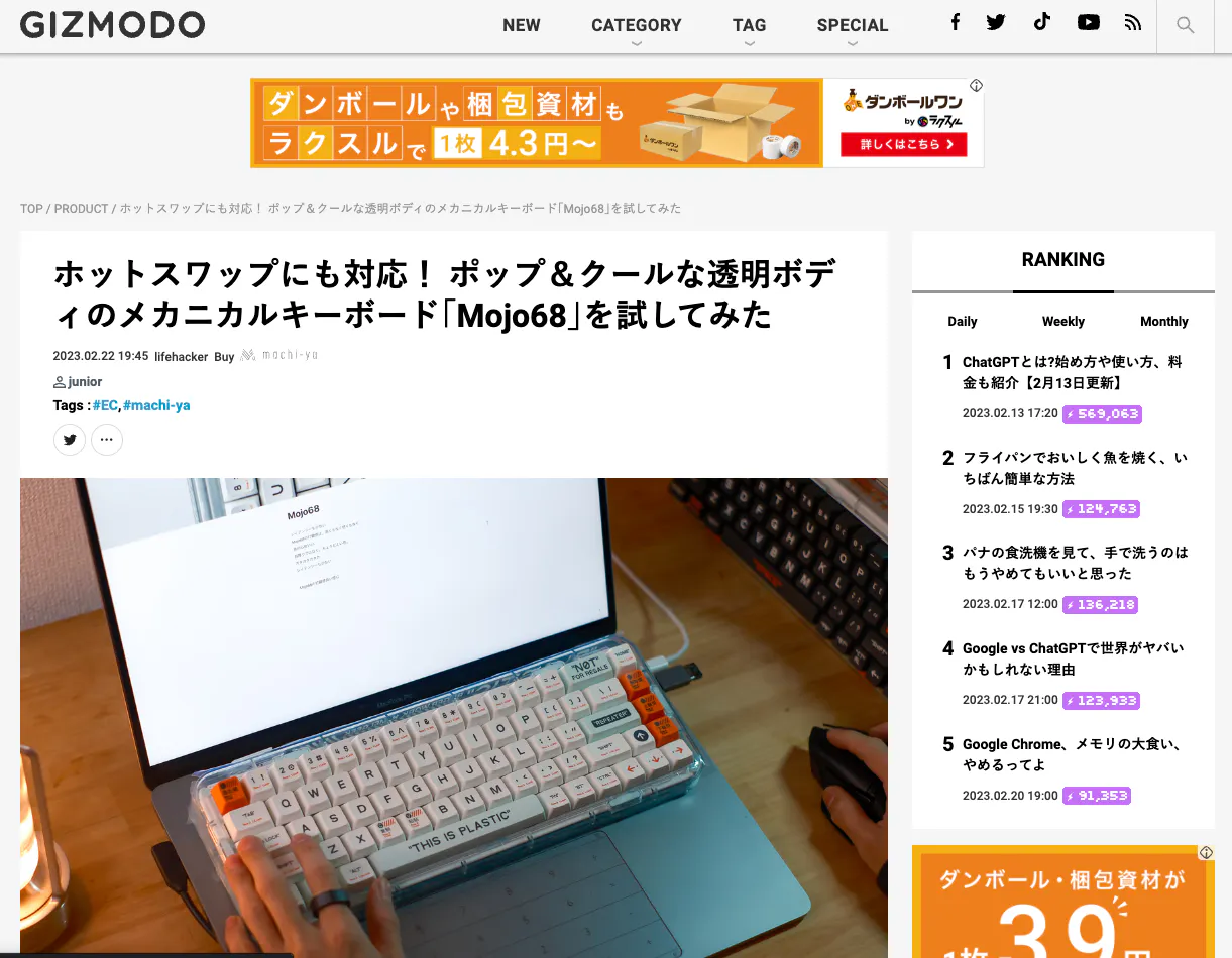 この度、「GIZMODO(ギズモード)」様にMojo68のレビュー記事を掲載いただきました!