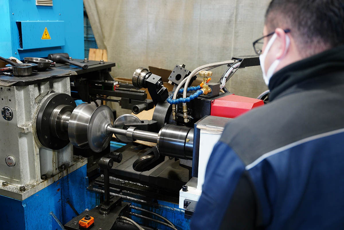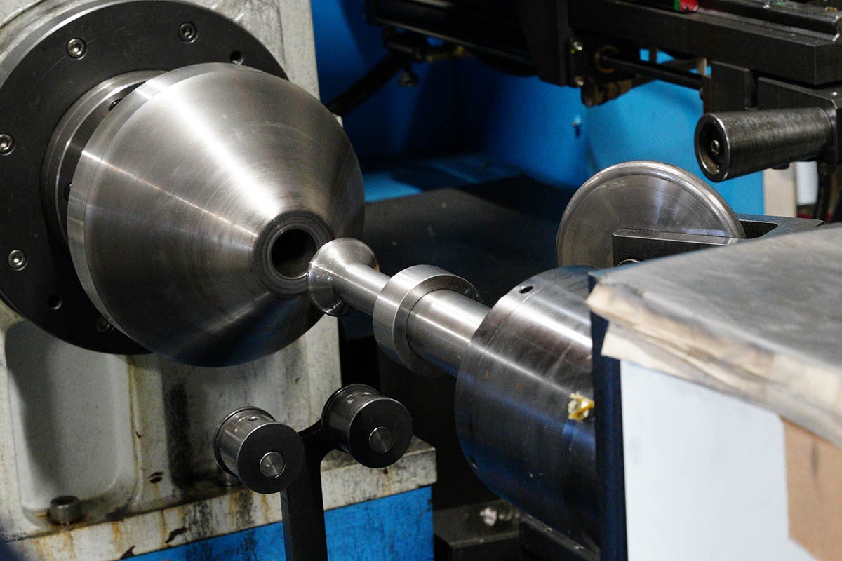 弊社では、へら絞りをよりシステマティックに再現できる「スピニングマシン」(へらではなく回転ローラーを当てて成形する機械)を数年前に導入しました。