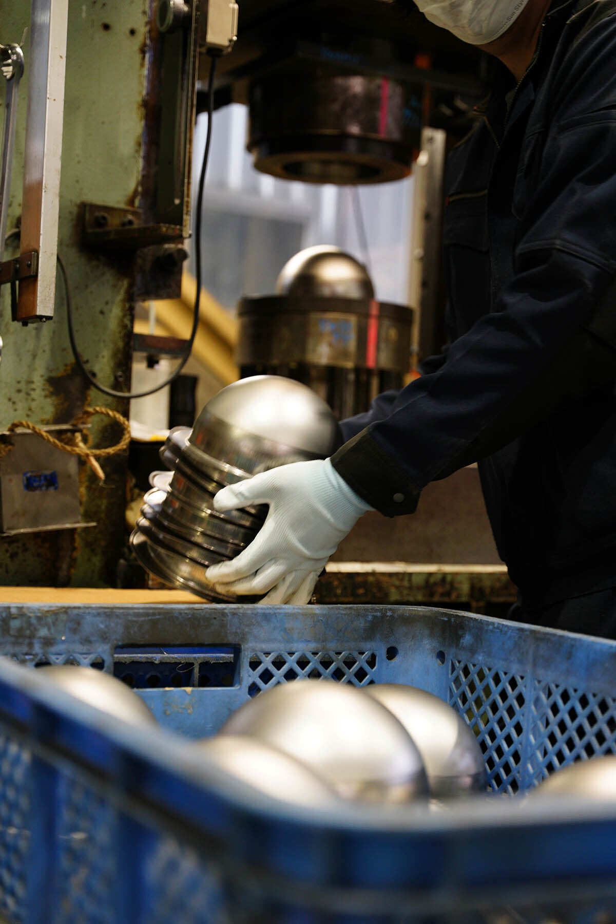 ものづくりの街、新潟県の燕三条地区で金属加工一筋70年。私たち有本製作所は、プレス機械を用いて金属の板に数10トンもの圧力をかけて器状に成形する「深絞り加工」を強みとしています。