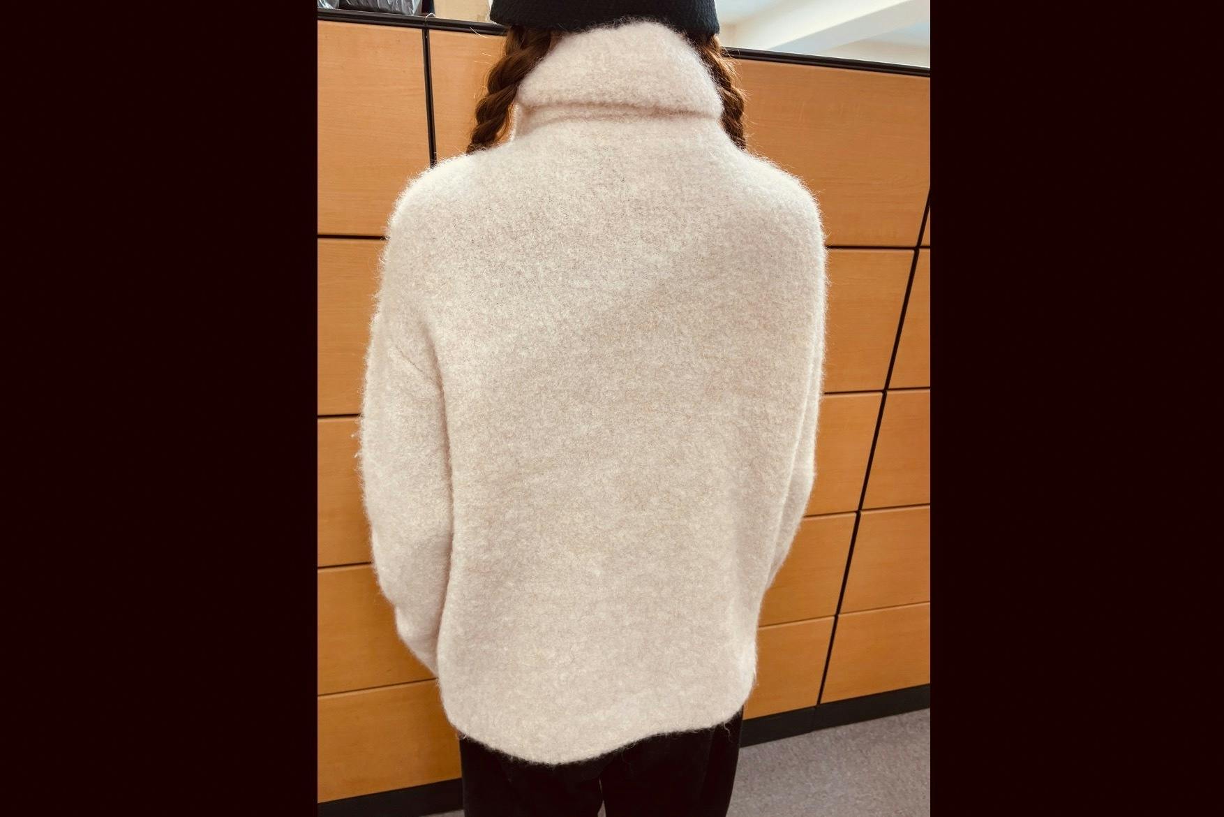 縮絨加工を施しておりますので、ニットの特性である伸縮性はあまりございません。