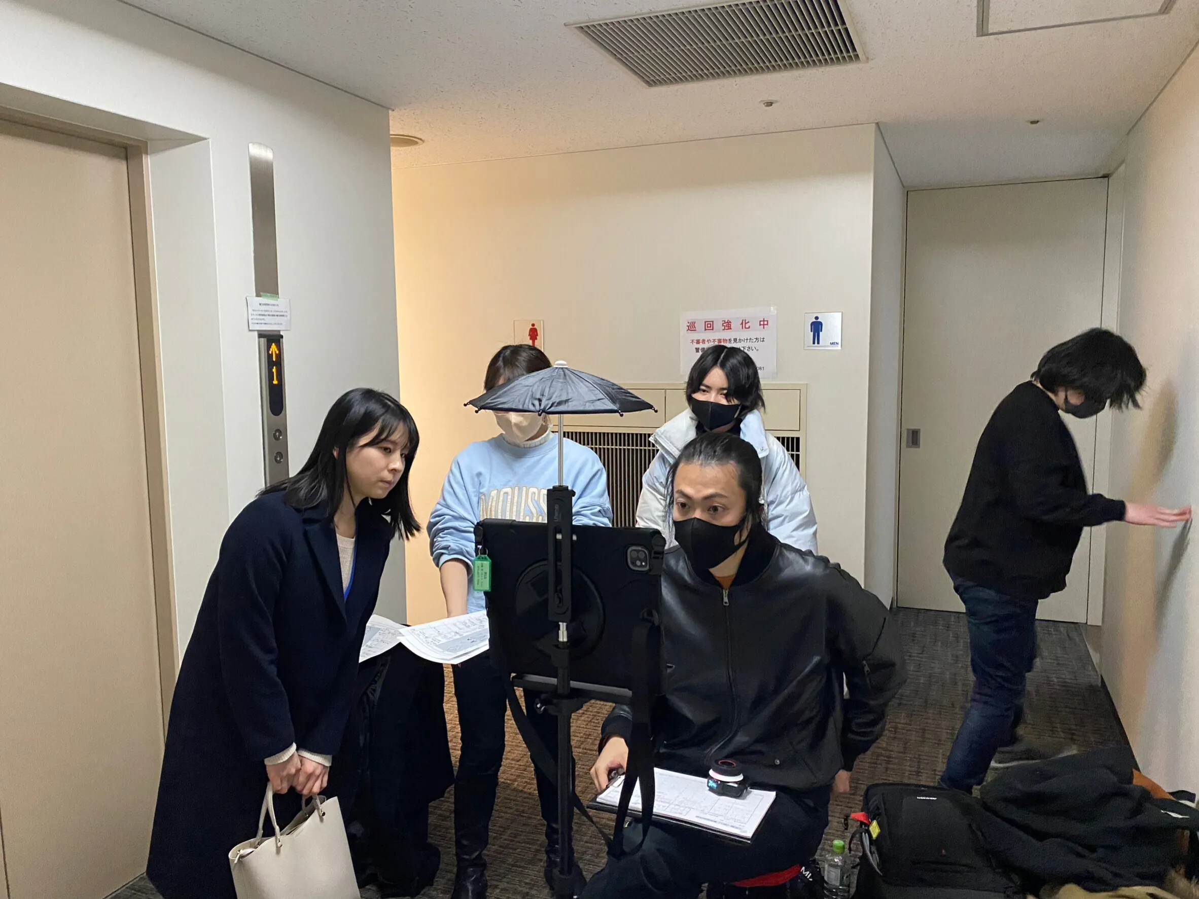 今回は、主人公の回想シーン(職場・大学時代)を撮影しました。