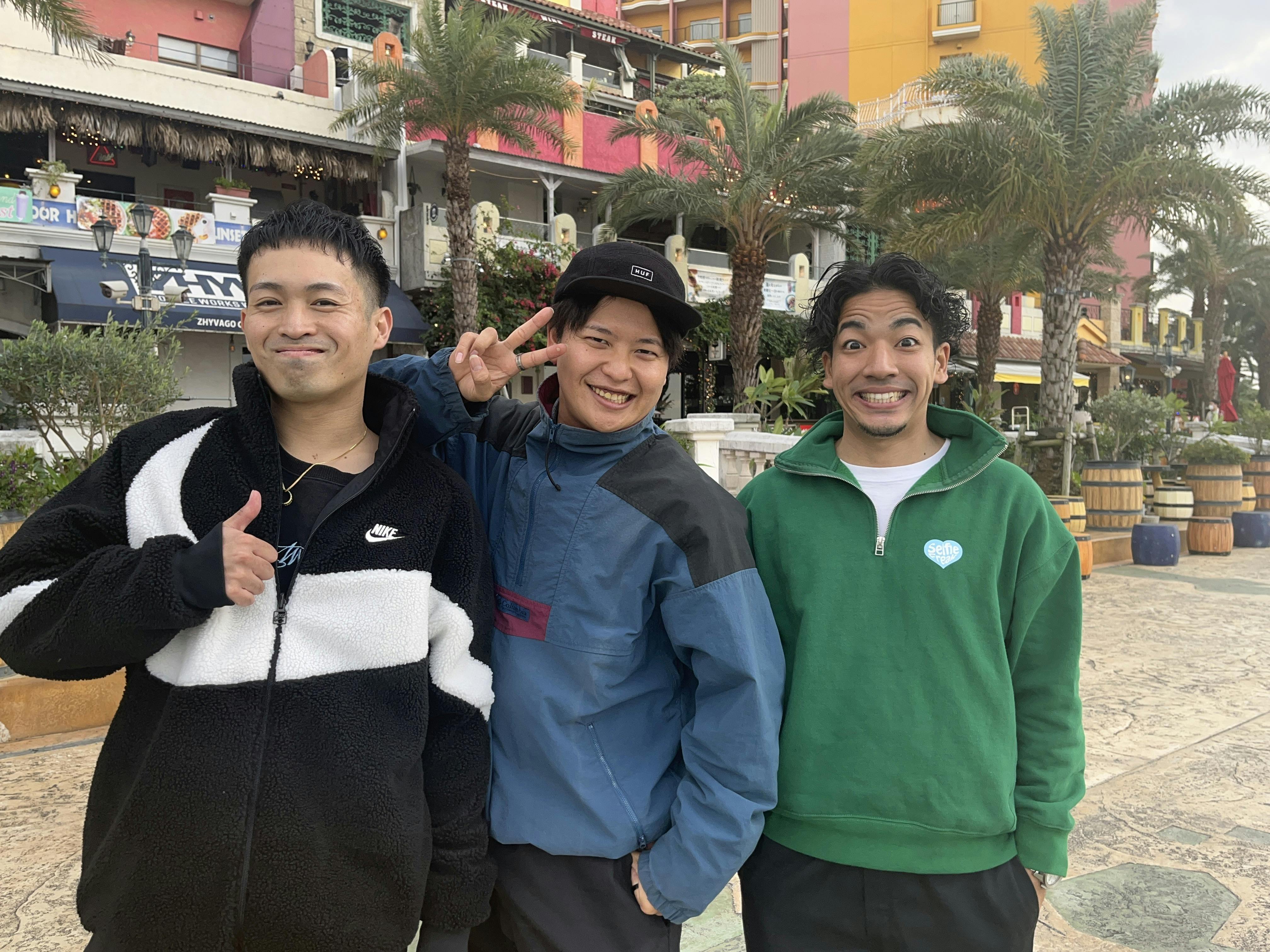 個性あふれる3人組で沖縄に新感覚ドライブスポット『夜のくれーぷ』を作り沖縄を盛り上げていきたいです!