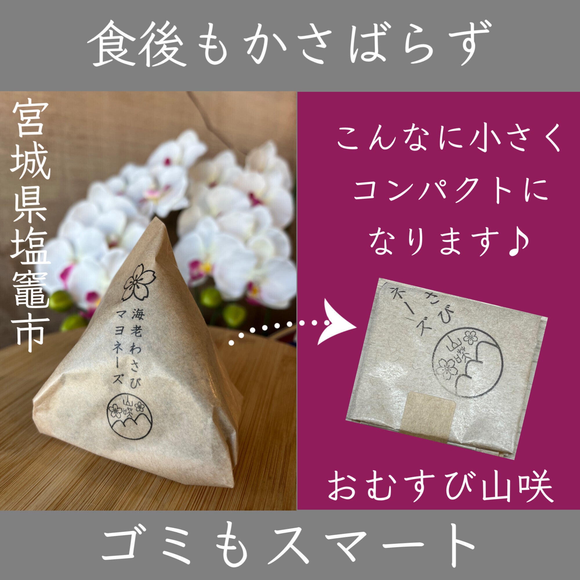 使用食材には特に拘りがあり、宮城県産ひとめぼれ・塩竈浦戸諸島の海苔・塩竈天然海水の塩・藻塩を使用し、国産・オーガニック食材など厳選素材を使用、また、保存料・着色料などを使用せず安心して食べて頂けるこだわりの手作りのおむすびです。 パッケージにも拘りがあり、特殊加工された紙で包む事で食べた後のゴミも最小限にする事が出来、水分を逃しにくいので柔らかさを長時間キープする事が可能です。