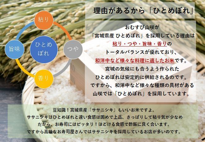 間違いなく宮城県産ひとめぼれは優秀なお米なんです。ですから山咲では